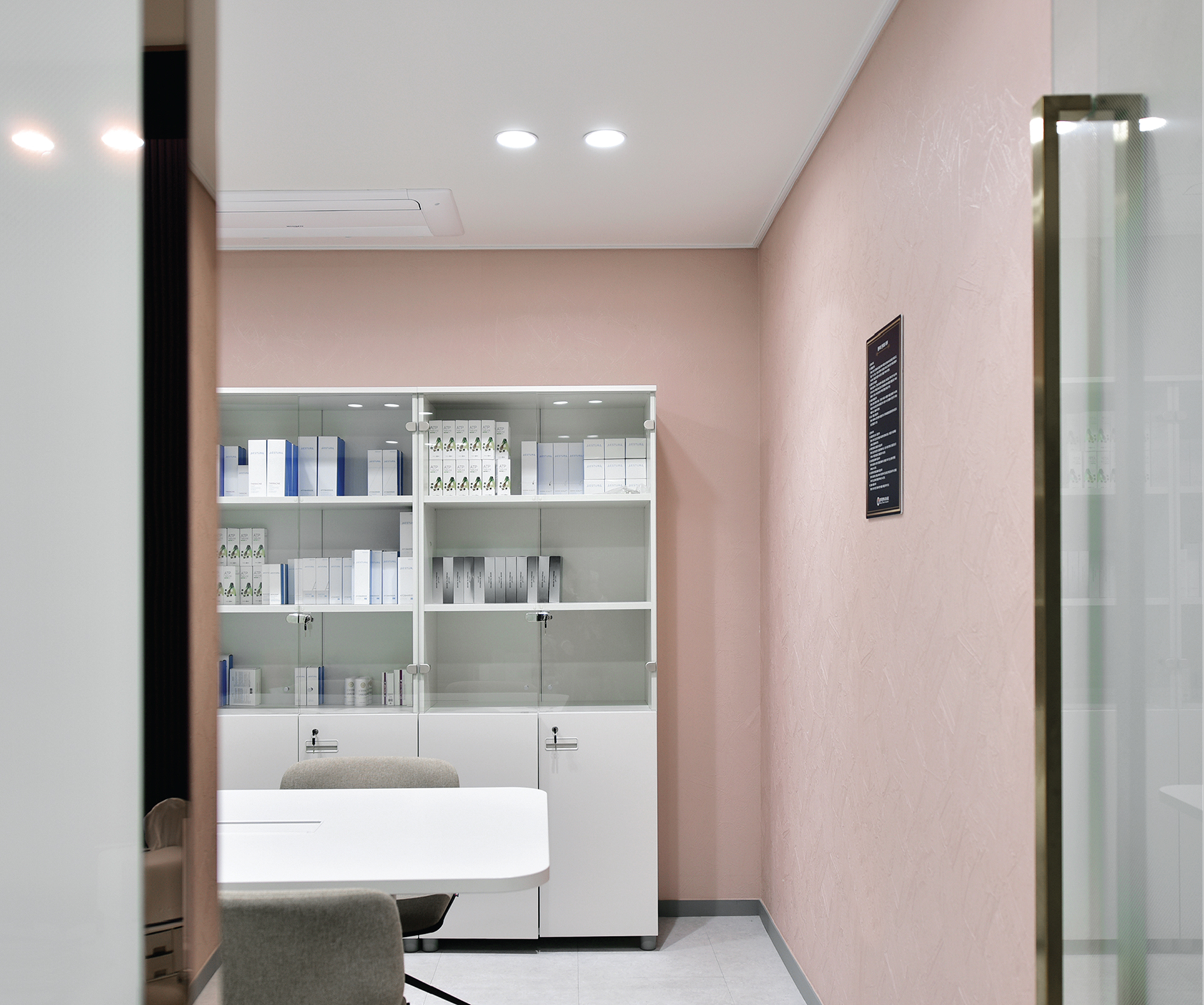 동양미인은 단순한 시술 공간을 넘어, 브랜드의 미학과 고객의 감성을 담아낸 프라이빗하고 감각적인 공간으로 완성되었습니다. 곡선형 조명과 입체 패널은 부드럽고 차분한 첫인상을 남기며, 딥 퍼플과 자연석 질감의 세라믹은 고급 스러운 긴장감을 더합니다. 각기 다른 소재의 조화는 정제된 아름다움과 섬세한 디테일을 담아내며, 고객의 심리적 안정과 브랜드 경험을 동시에 제공합니다.