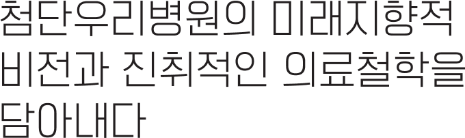 심플하고 현대적인 조형미를 통해 첨단우리병원의 미래지향적 비전과 진취적인 의료철학을 담아낸 디자인입니다.